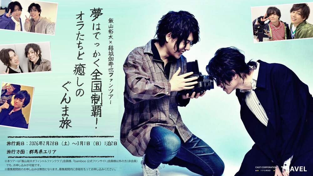飯山裕太×結城伽寿也ファンツアー『夢はでっかく全国制覇!オラたちと癒しのぐんま旅』 SCHEDULE 2026/02/28(土) - 2026/03/01(日) 群馬県 詳細はこちら URLをコピーする 報告する